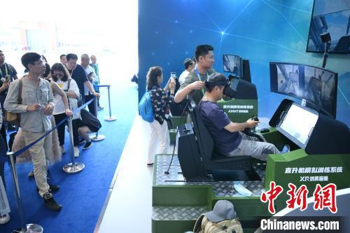 9月14日,與會者在展位體驗(yàn)直升機(jī)模擬訓(xùn)練系統(tǒng)。當(dāng)日,第六屆中國天津國際直升機(jī)博覽會在天津市空港經(jīng)濟(jì)區(qū)開幕。為期四天的博覽會吸引了來自全球20多個(gè)國家和地區(qū)的350余家直升機(jī)企業(yè)齊聚津門。 佟郁 攝
