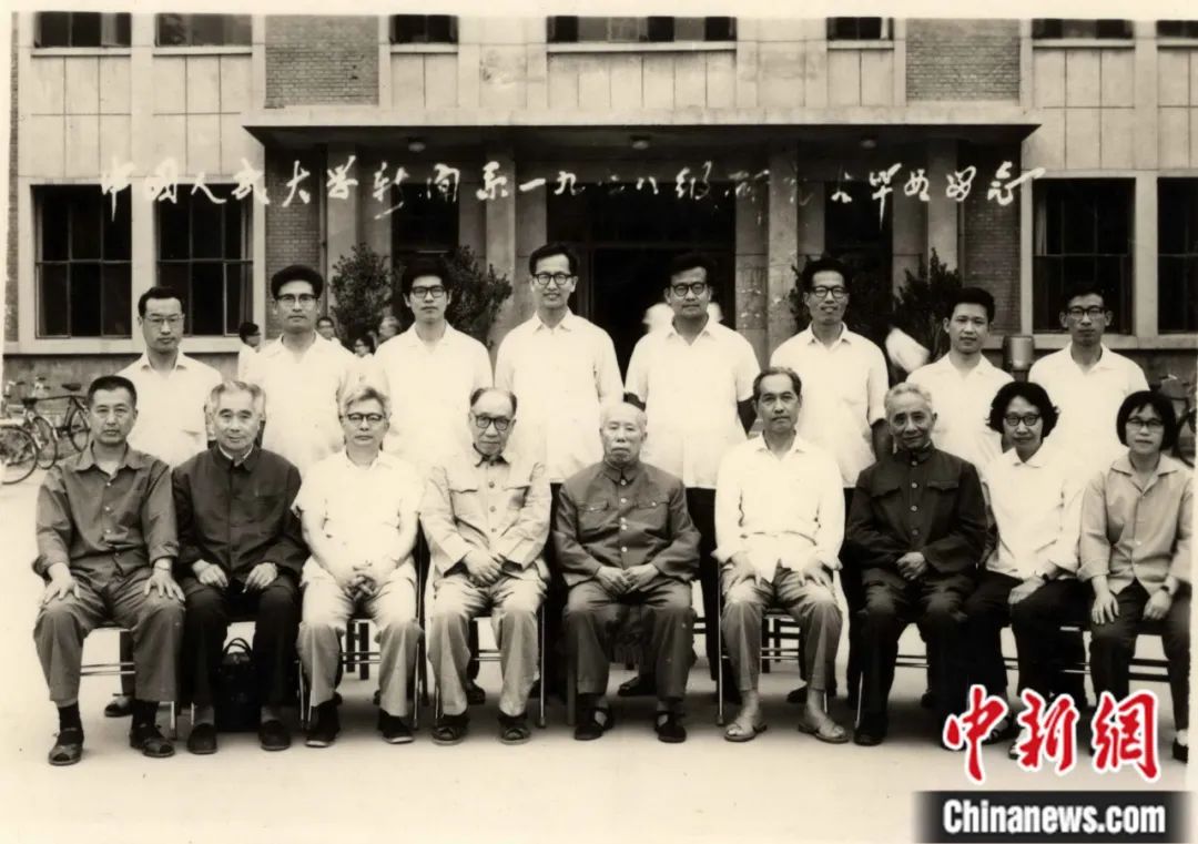 1981年,中國(guó)人民大學(xué)新聞系1978級(jí)研究生畢業(yè)留念。前排左三為方漢奇。中國(guó)人民大學(xué)新聞學(xué)院供圖