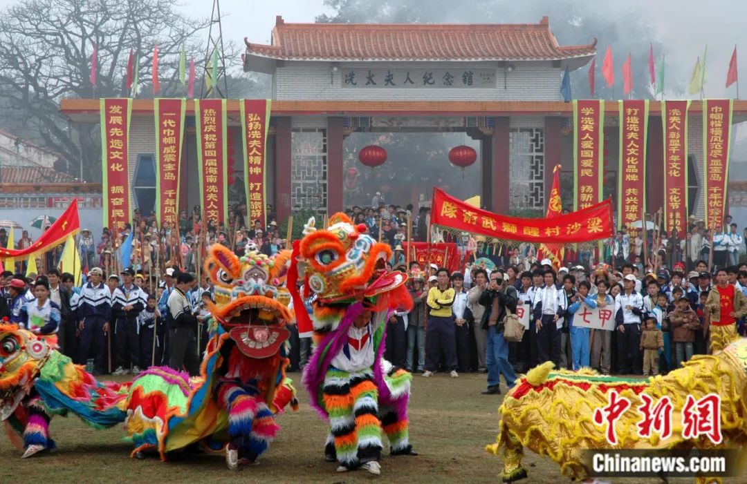 2005年3月15日,第四屆海南冼夫人文化節(jié)在??谑行缕骆?zhèn)開(kāi)幕,來(lái)自國(guó)內(nèi)外的160余名嘉賓和當(dāng)?shù)厝罕?000多人參加了紀(jì)念大會(huì)。蔣聚榮 攝