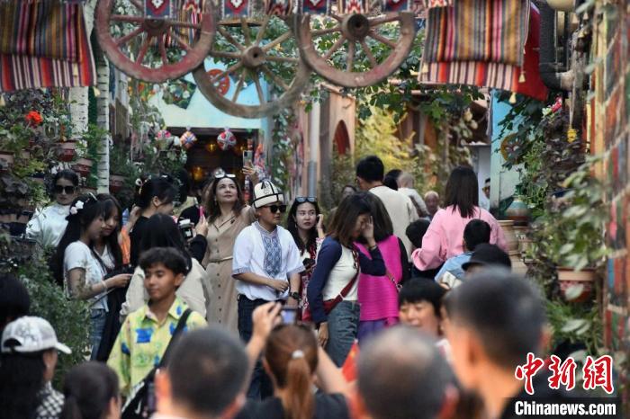 正值中秋國慶假期,位于中國西部的新疆喀什古城景區(qū)迎來旅游高峰,成為眾多游客的出行目的地。圖為10月1日,喀什古城景區(qū)里絡(luò)繹不絕的游客?!≈行戮W(wǎng)記者 孫亭文 攝