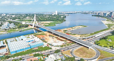 近年來,中國企業(yè)為提升非洲基礎(chǔ)設(shè)施水平、加速互聯(lián)互通和一體化進程、促進當(dāng)?shù)亟?jīng)濟社會發(fā)展和民生改善等作出了積極貢獻。圖為中國路橋工程有限責(zé)任公司承建的科特迪瓦阿比讓科科迪斜拉橋項目。