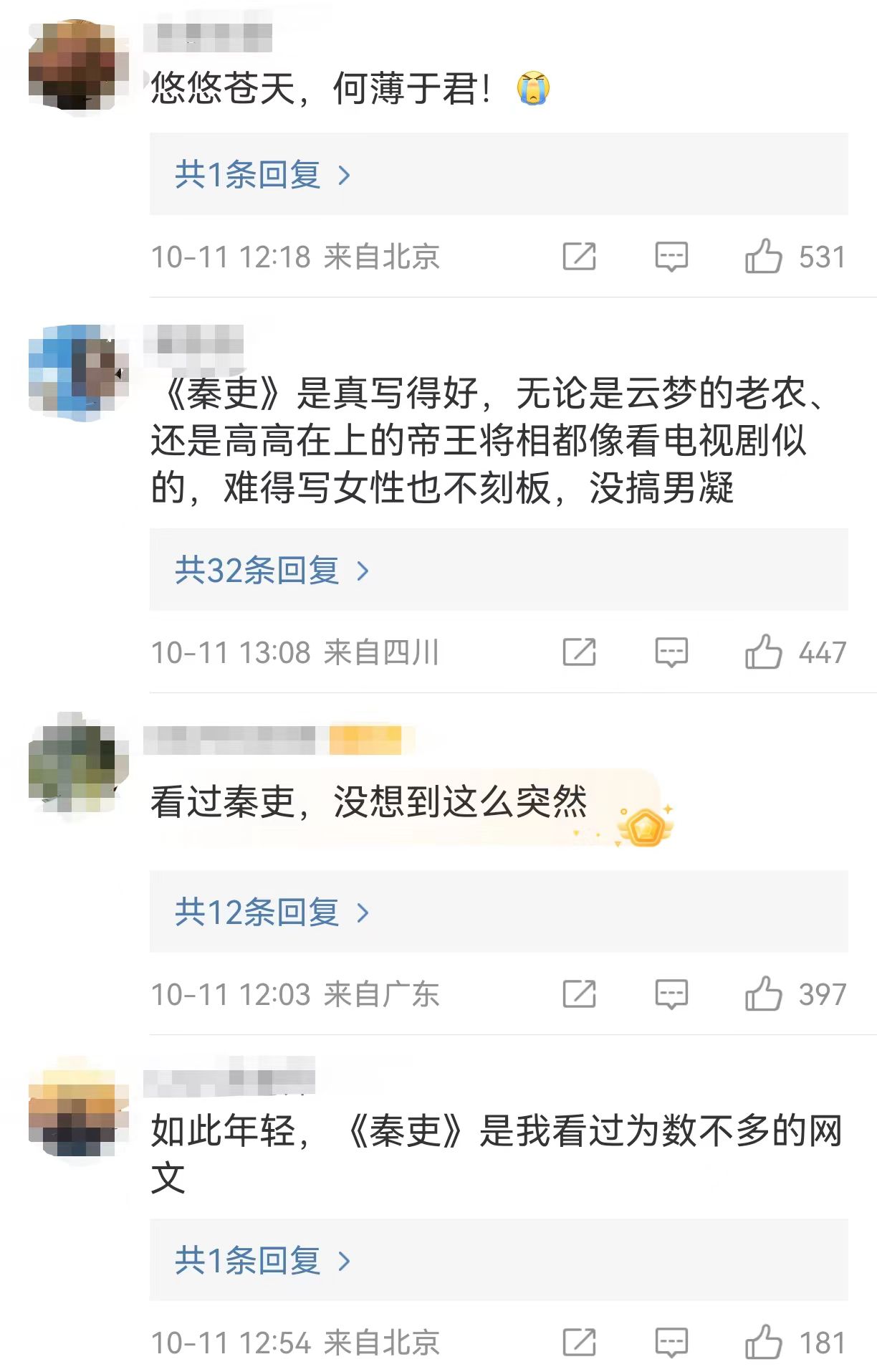 閱文集團(tuán)發(fā)布的訃告里寫(xiě)道:“七月新番一生赤誠(chéng),專(zhuān)注。他有志于循中國(guó)歷史脈絡(luò),由遠(yuǎn)及近,針對(duì)各個(gè)歷史時(shí)期完成相應(yīng)的故事創(chuàng)作。為此,他嚴(yán)謹(jǐn)推敲,細(xì)致考據(jù),從極少作家涉足的春秋戰(zhàn)國(guó)題材起筆,扎實(shí)書(shū)寫(xiě)秦、漢故事。他所塑造的黑夫、任弘、第五倫等角色,燦爛鮮活,引讀者共鳴、共情,如今中斷于三國(guó)篇,我們深感悲痛、遺憾?!?/p>