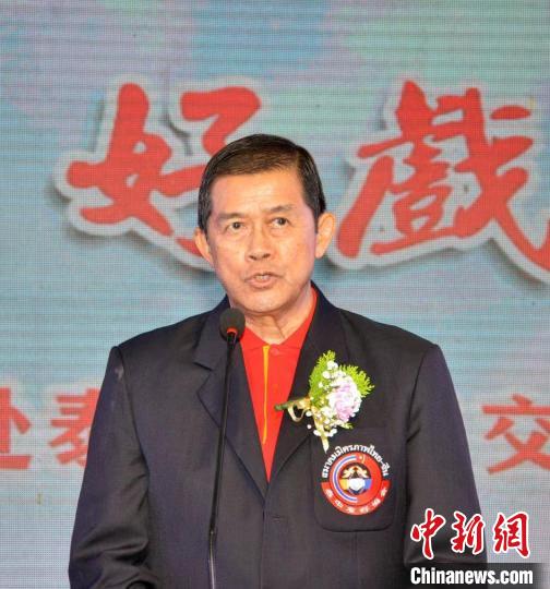 泰國(guó)前副總理、泰中友好協(xié)會(huì)會(huì)長(zhǎng)功·塔帕朗西在晚會(huì)開(kāi)幕式上致辭。李映民 攝