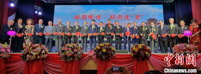 為隆重慶祝泰中建交48周年,泰國(guó)文化部、泰國(guó)潮劇公會(huì)聯(lián)合舉辦"鄉(xiāng)音連僑心"潮劇晚會(huì),13日晚潮劇會(huì)開(kāi)幕和首演,圖為與會(huì)嘉賓為晚會(huì)開(kāi)幕剪彩。鄭友宜 攝