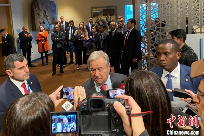 當(dāng)?shù)貢r(shí)間10月13日,聯(lián)合國(guó)秘書長(zhǎng)古特雷斯在安理會(huì)就中東局勢(shì)進(jìn)行緊急磋商后,在紐約聯(lián)合國(guó)總部回答記者提問(wèn)。 中新社記者 王帆 攝