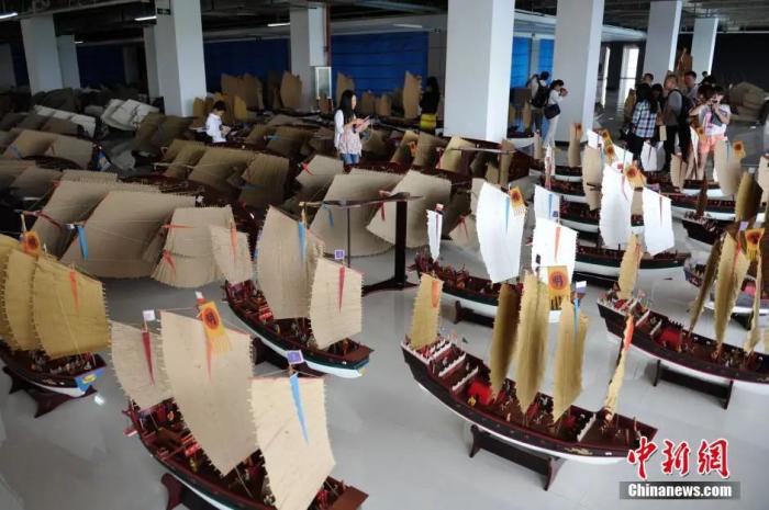 資料圖:著名探險家金飛豹“復原”的鄭和艦隊。中新社發(fā) 劉冉陽 攝