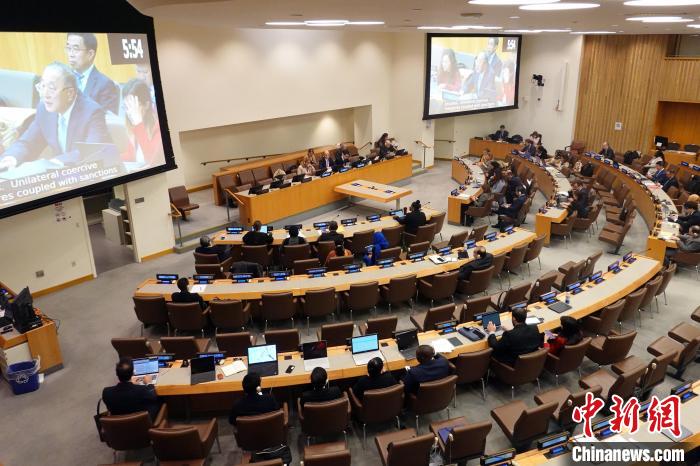 張軍還代表28個國家作共同發(fā)言,揭批美西方濫施單邊強(qiáng)制措施,強(qiáng)調(diào)單邊強(qiáng)制措施違反《聯(lián)合國憲章》宗旨和原則以及國際法,有悖于多邊主義和國際關(guān)系基本準(zhǔn)則,對受制裁國家及其人民造成破壞性甚至致命后果,嚴(yán)重侵犯并剝奪了包括健康權(quán)和生命權(quán)在內(nèi)的各項人權(quán),呼吁立即徹底取消。