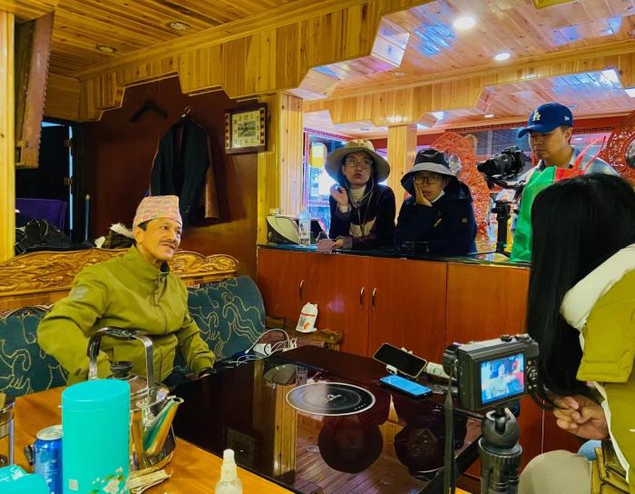 圖為庫瑪爾接受“遇見西藏 扎西德勒”網(wǎng)絡(luò)國際傳播活動記者團(tuán)專訪。(主辦方供圖)