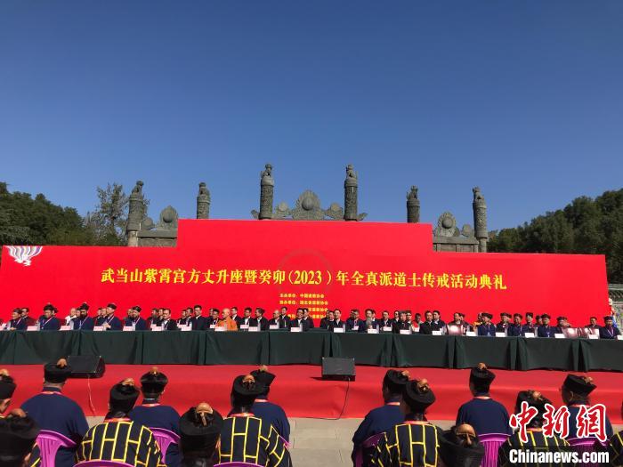 10月21日,武當山紫霄宮方丈升座暨癸卯(2023)年全真派道士傳戒活動典禮在湖北省丹江口市靜樂宮舉行。中國道教協(xié)會會長李光富道長升座武當山紫霄宮方丈。圖為活動現(xiàn)場。中新網記者 陳建新 攝