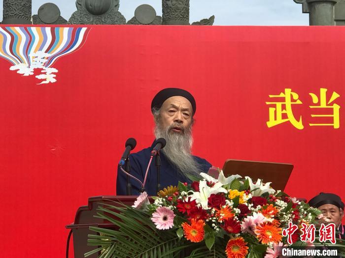10月21日,武當山紫霄宮方丈升座暨癸卯(2023)年全真派道士傳戒活動典禮在湖北省丹江口市靜樂宮舉行。中國道教協(xié)會會長李光富道長升座武當山紫霄宮方丈。圖為李光富致答謝辭。中新網記者 陳建新 攝