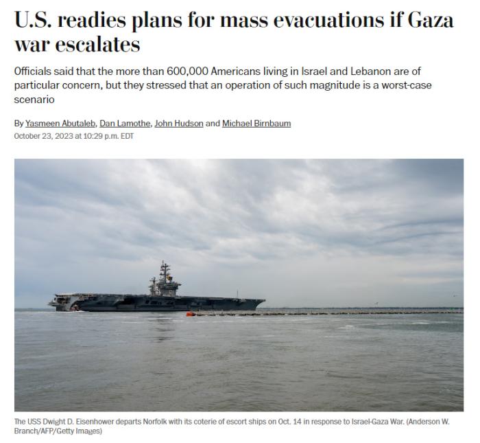 報道還稱,根據美國政府可能展開的撤離公民行動的規(guī)模,這場行動可能比以往的任何撤離公民行動都更加困難。此次行動可能涉及10月已經“涌入”中東地區(qū)的美國空軍飛機和海軍艦艇。