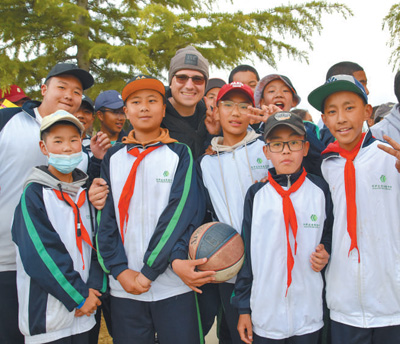 2023年5月,中國外文局語言顧問拉斐爾(中)在西藏拉薩與當?shù)貙W生合影留念。