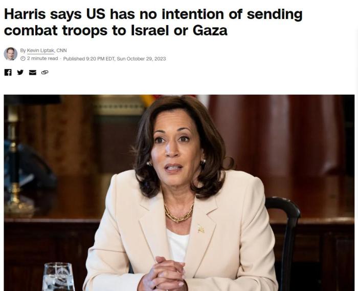中新網10月30日電 據美國有線電視新聞網(CNN)報道,在當地時間29日播出的節(jié)目中,美國副總統(tǒng)哈里斯表示,出于對更廣泛地區(qū)沖突的擔憂,美國“絕對無意”向以色列或加沙地帶派遣美國作戰(zhàn)部隊。