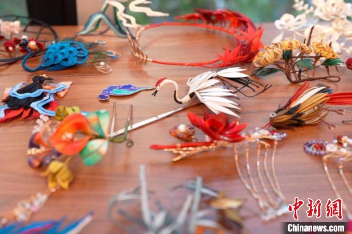 圖為活動展示的部分中國傳統(tǒng)發(fā)簪配飾。漢文化藝術交流中心供圖