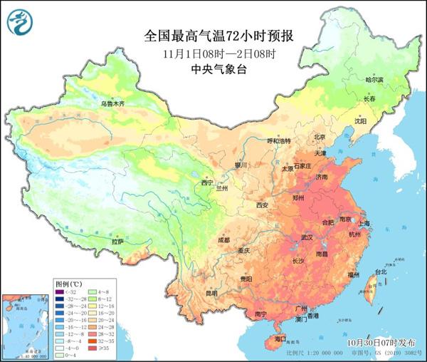本周前期,中東部升溫還將繼續(xù)。 預(yù)計(jì)本周初,全國大部仍會以升溫為主,并且大幅偏離常態(tài)。特別是華北、黃淮一帶,11月初暖熱程度還會升級,部分地區(qū)最高氣溫甚至?xí)^30℃部分,比如,鄭州,菏澤等地可能在11月1日前后迎來當(dāng)?shù)?1月觀測史上的首個(gè)30℃。