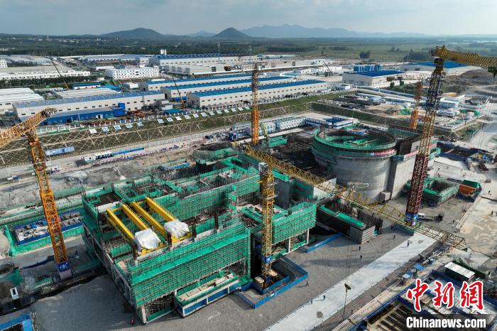圖為航拍全球首個開工建設的陸上商用模塊化小型反應堆“玲龍一號”。海南核電有限公司供圖