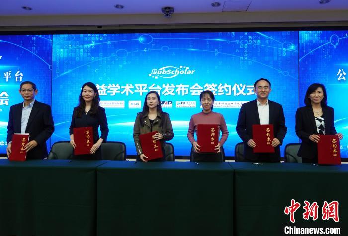 11月1日,“PubScholar公益學(xué)術(shù)平臺”在中國科學(xué)院文獻(xiàn)情報(bào)中心正式發(fā)布,并在發(fā)布會上舉行相關(guān)合作簽約儀式。中新網(wǎng)記者 孫自法 攝