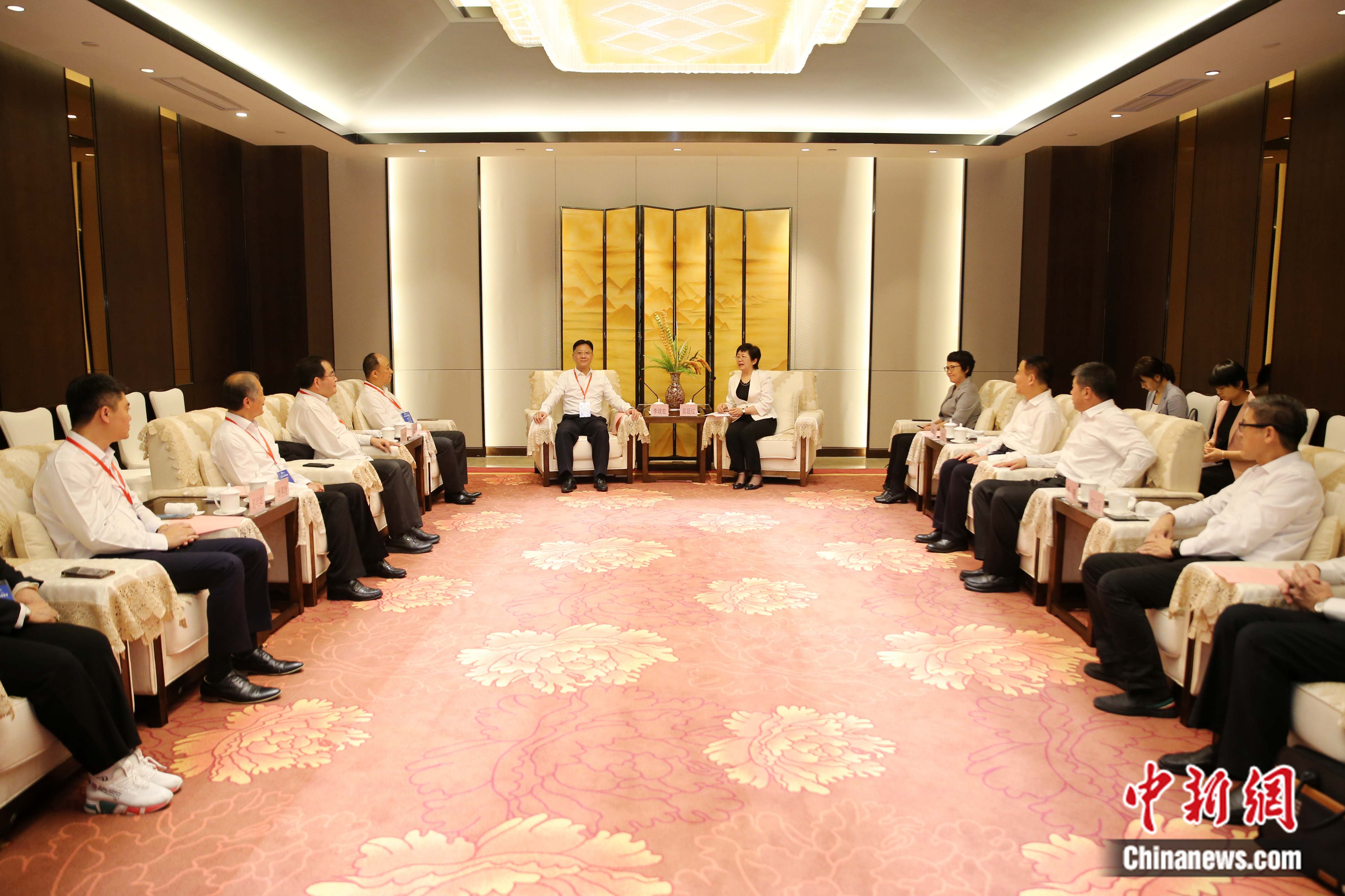 11月6日,海南省委常委、統(tǒng)戰(zhàn)部部長(zhǎng)苗延紅在??跁?huì)見(jiàn)參加2023臺(tái)商峰會(huì)的部分嘉賓代表。海南省委統(tǒng)戰(zhàn)部供圖