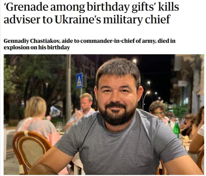 據(jù)報道,當(dāng)天,烏克蘭武裝部隊總司令瓦列里·扎盧日內(nèi)在社交媒體Telegram上發(fā)文稱,“很不幸地,我的助手兼好友根納季·查斯季亞科夫少校(Gennadiy Chastyakov)今天在他的生日當(dāng)天身亡?!?/p>