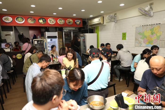 11月5日,臺(tái)北萬華區(qū)的柳州螺螄粉店內(nèi),顧客正在用餐。 中新社記者 陳小愿 攝