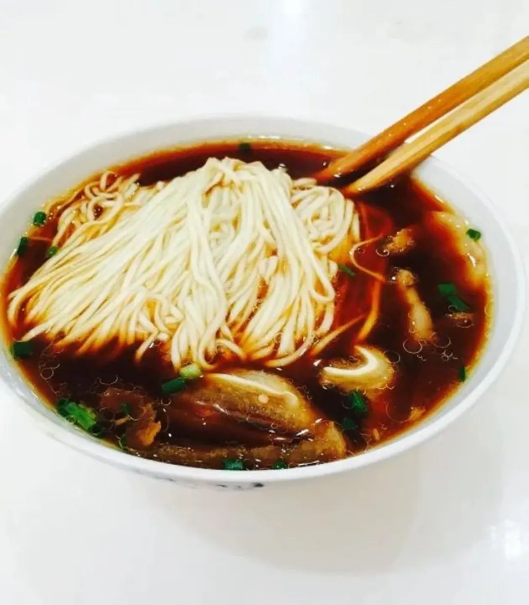 現(xiàn)撈面與秘制調(diào)料攪拌融合