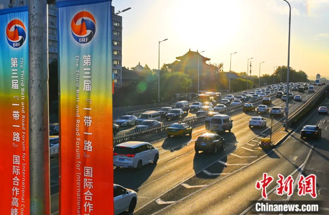 2023年10月,北京市街頭布置的第三屆“一帶一路”國際合作高峰論壇元素裝置。胡慶明 攝