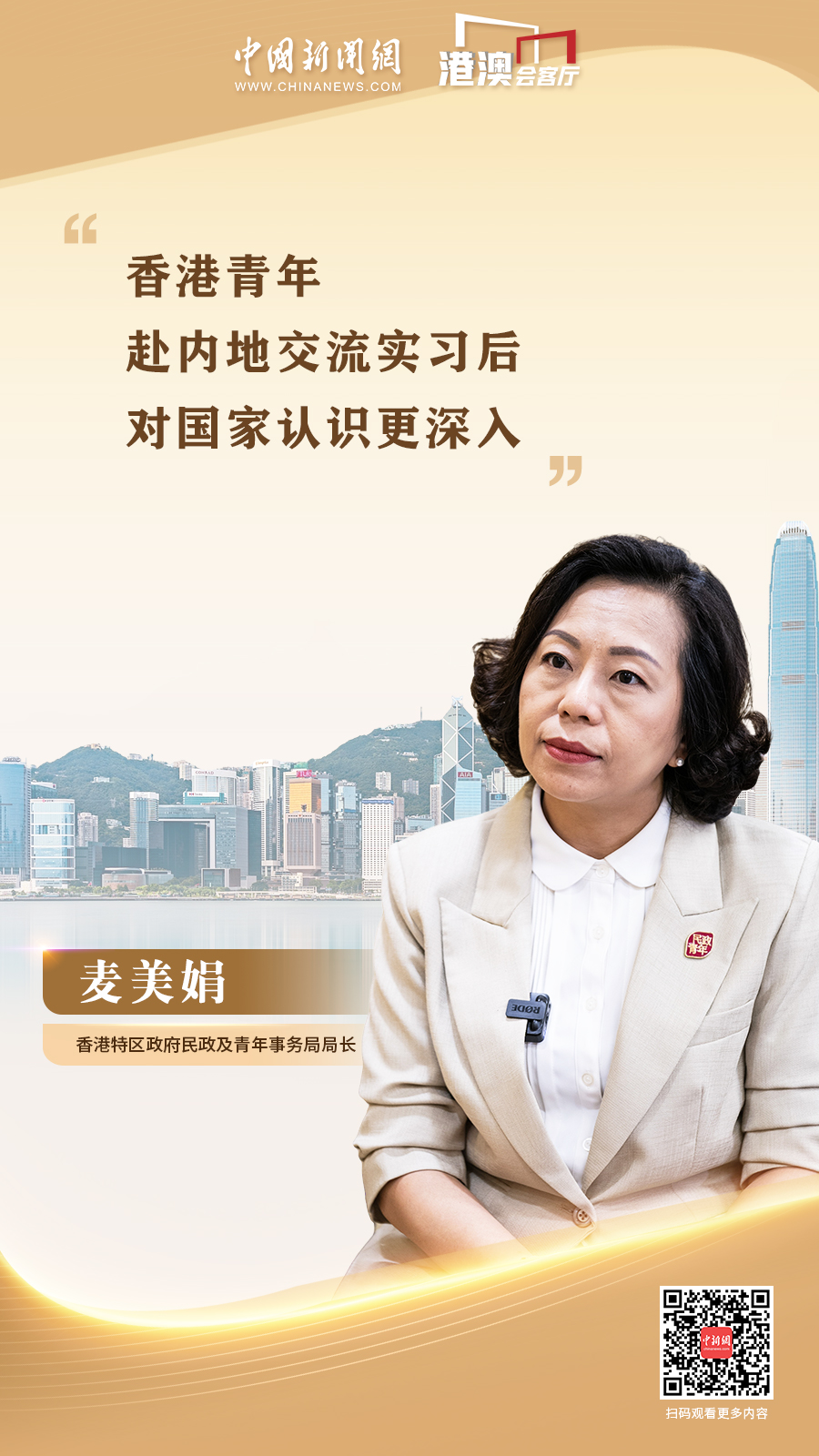 香港特區(qū)政府民政及青年事務(wù)局局長麥美娟近日接受中國新聞網(wǎng)“港澳會客廳”欄目專訪時表示,香港青年赴內(nèi)地交流實習后對國家認識更深入。