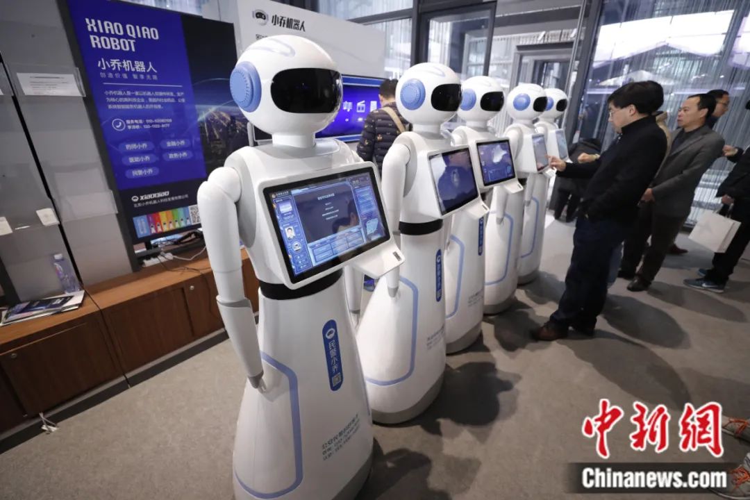 第四屆世界互聯(lián)網(wǎng)大會(huì)“互聯(lián)網(wǎng)之光”博覽會(huì)上,參觀者體驗(yàn)人工智能機(jī)器人。杜洋 攝