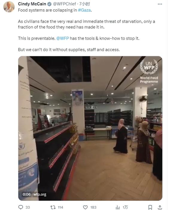 圖片來源:世界糧食計劃署執(zhí)行主任辛迪·麥凱恩社交媒體賬戶截圖