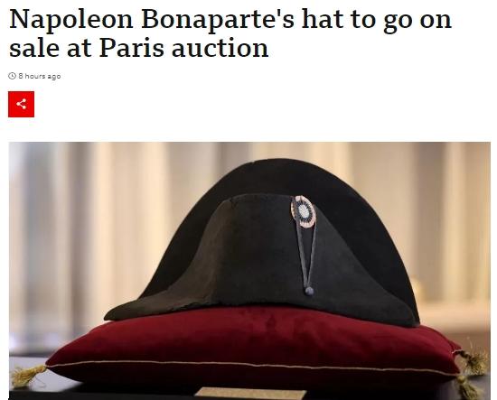 拿破侖標(biāo)志性雙角帽將被拍賣(mài) 估價(jià)高達(dá)80萬(wàn)歐元
