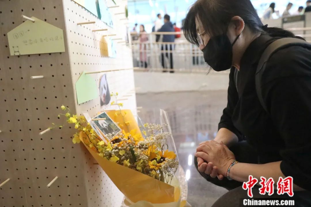 不少家長(zhǎng)帶著小朋友來(lái)到現(xiàn)場(chǎng)參加活動(dòng),小朋友在卡片上慢慢畫出心中熊貓的模樣,并寫下想對(duì)“團(tuán)團(tuán)”說(shuō)的話。有的民眾還送來(lái)鮮花,表達(dá)對(duì)“團(tuán)團(tuán)”的喜愛(ài)和懷念之情。