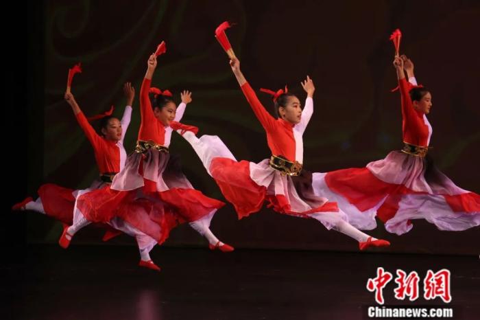2023年9月,加拿大大多倫多地區(qū)萬錦市,加拿大舞蹈藝術(shù)聯(lián)盟舉辦首屆舞蹈大賽。圖為一支中國舞兒童組參賽隊(duì)進(jìn)行表演。余瑞冬 攝