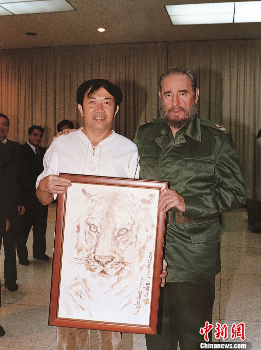 袁熙坤將代表作《山君造像》贈與古巴革命領袖菲德爾 卡斯特羅。受訪者供圖