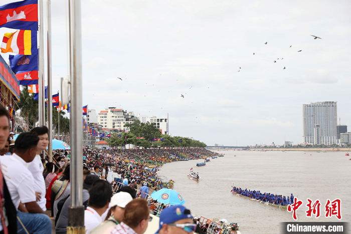 今年送水節(jié)活動是柬埔寨自2020年以來受到新冠疫情影響以及因2022年舉辦東盟峰會,時隔三年再度舉行。本次送水節(jié)舉辦的龍舟比賽,共有來自全國各地338只代表船隊(duì)角逐,超過2萬名劃手參與其中。