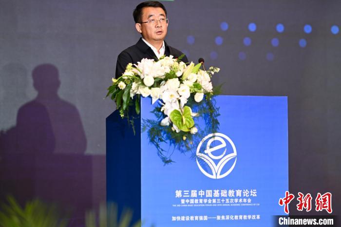 圖為中國教育學(xué)會(huì)副秘書長趙應(yīng)生在論壇上交流發(fā)言。中新網(wǎng)記者何蓬磊攝