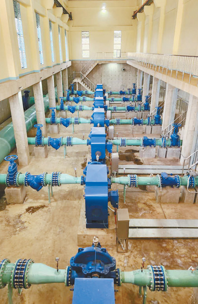 坦桑尼亞阿魯沙新供水系統(tǒng)項(xiàng)目由中國(guó)電建市政建設(shè)集團(tuán)有限公司承建。項(xiàng)目設(shè)計(jì)日供水量為12.5萬(wàn)立方米/天,可滿(mǎn)足阿魯沙40萬(wàn)人的用水需求。項(xiàng)目建成后將極大地改善阿魯沙市區(qū)的供水短缺問(wèn)題,對(duì)推動(dòng)當(dāng)?shù)亟?jīng)濟(jì)發(fā)展、增進(jìn)民生福祉具有重要作用。圖為阿魯沙新供水系統(tǒng)項(xiàng)目5號(hào)提升泵站內(nèi)景。