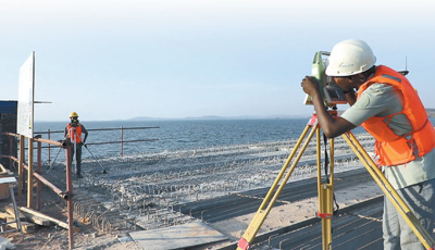 坦桑尼亞馬古富力大橋由中國(guó)土木工程集團(tuán)有限公司和中鐵十五局聯(lián)合承建,連接坦桑尼亞蓋塔省和姆萬(wàn)扎省,是坦桑尼亞重要的內(nèi)陸國(guó)際通道。大橋建成后將極大改善當(dāng)?shù)亟煌顩r,帶動(dòng)坦桑尼亞與周邊國(guó)家的互聯(lián)互通,促進(jìn)區(qū)域經(jīng)濟(jì)社會(huì)發(fā)展。圖為該項(xiàng)目外籍工程師正在使用全站儀進(jìn)行室外測(cè)控。