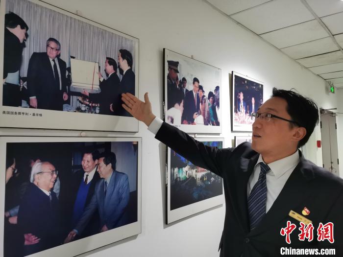 12月1日,南園賓館副總經(jīng)理羅浩介紹1994年基辛格訪問(wèn)蘇州時(shí)在南園賓館的故事。 中新社記者 鐘升 攝
