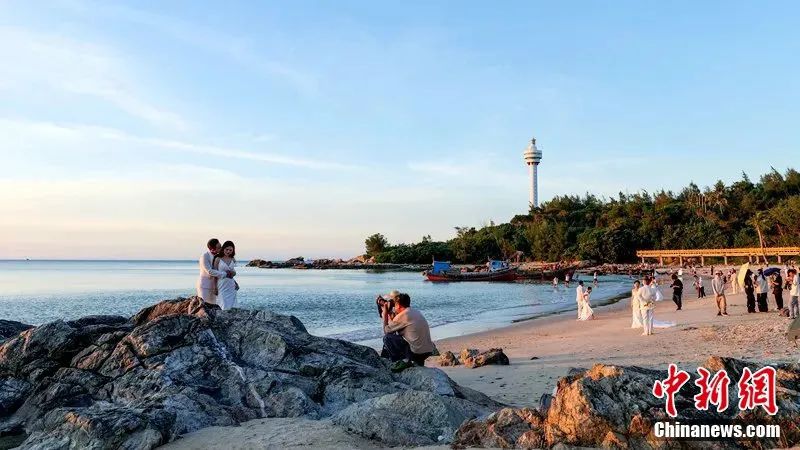 圖為文昌市木蘭灣美麗濱海風光吸引不少新人在此拍攝婚紗照。凌楠 攝