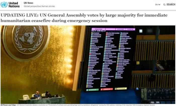 聯(lián)合國(guó)大會(huì)高票通過(guò)加沙?;饹Q議 美國(guó)投票反對(duì)