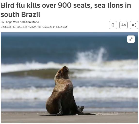 報道稱,高致病性禽流感病毒也在其他動物種群中傳播,包括海鳥、海豹和海獅等動物。巴西當局收集了海灘上死去的鼠海豚和企鵝的尸體樣本,但檢測結果尚未得出。