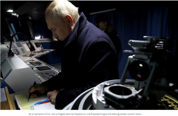 普京登上“卡薩托諾夫海軍元帥”號(hào)護(hù)衛(wèi)艦 視察武器系統(tǒng)(圖)