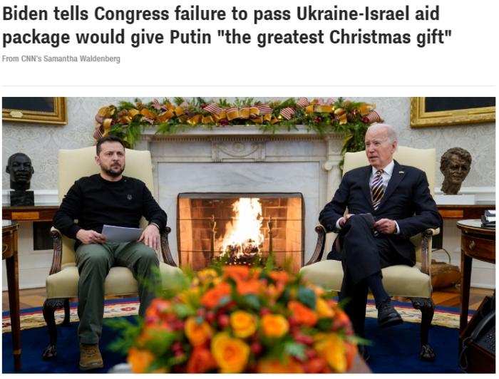 另?yè)?jù)美國(guó)有線電視新聞網(wǎng)(CNN)報(bào)道,當(dāng)天下午,澤連斯基前往白宮會(huì)見拜登,雙方在會(huì)談中都強(qiáng)調(diào)了美國(guó)對(duì)烏援助的緊迫性。拜登稱,如果美國(guó)會(huì)未能通過對(duì)烏援助計(jì)劃,這將是“送給俄總統(tǒng)普京最好的圣誕禮物”。