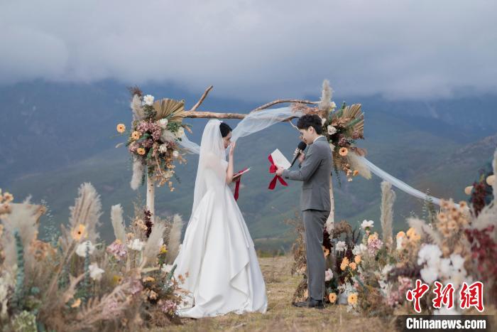 如今,旅行結(jié)婚受到越來(lái)越多年輕人的熱捧。資料圖為一對(duì)新人在2021年11月旅行結(jié)婚?!?受訪者張瑋祎 供圖)