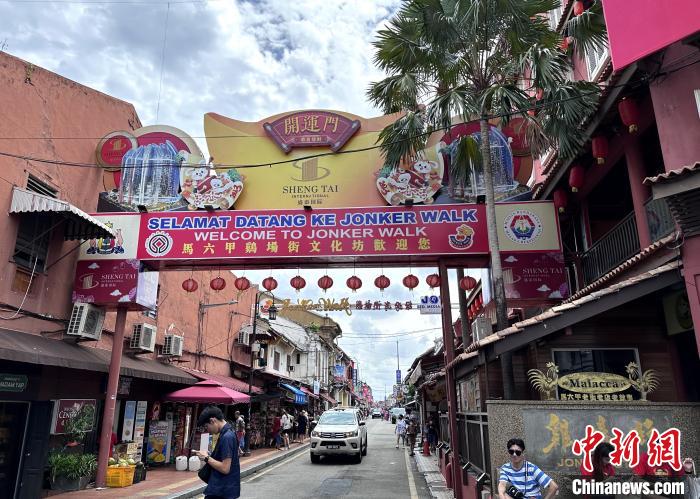 2023年6月拍攝的馬來西亞馬六甲雞場街入口?! ≈行律缬浾?陳悅 攝