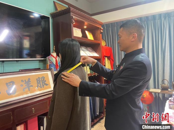 中新網(wǎng)寧波1月11日電(記者 林波)“特意打‘飛的’來浙江寧波找‘紅幫裁縫技藝’傳承人定做‘寶總’同款西裝?!苯?,來自山東青島的“西服愛好者”孫倪來到浙江省寧波市奉化區(qū)溪口鎮(zhèn)的王興昌洋服店,向該店“掌門人”王小方定做了一套西服。