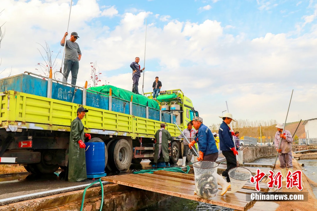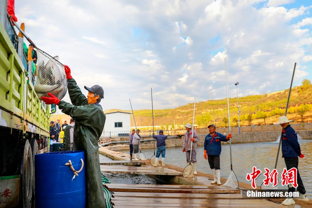 工人正在三文魚養(yǎng)殖場忙碌。 沁水縣融媒體中心供圖