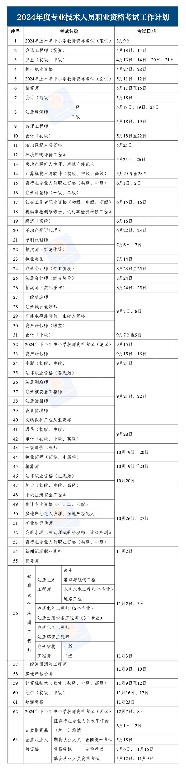中新網(wǎng)1月17日電 近日,人力資源社會保障部辦公廳印發(fā)《關(guān)于2024年度專業(yè)技術(shù)人員職業(yè)資格考試工作計劃及有關(guān)事項的通知》,明確了考試時間表。