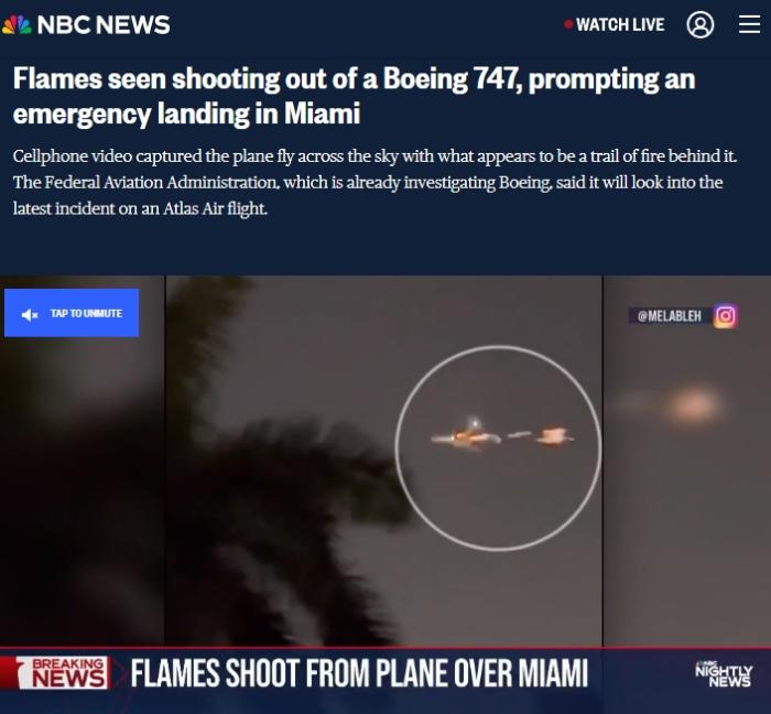 據(jù)報(bào)道,18日晚間,阿特拉斯航空公司的一架波音747型貨機(jī)從邁阿密國(guó)際機(jī)場(chǎng)起飛后不久便遭遇發(fā)動(dòng)機(jī)故障,隨后在同一機(jī)場(chǎng)緊急迫降。