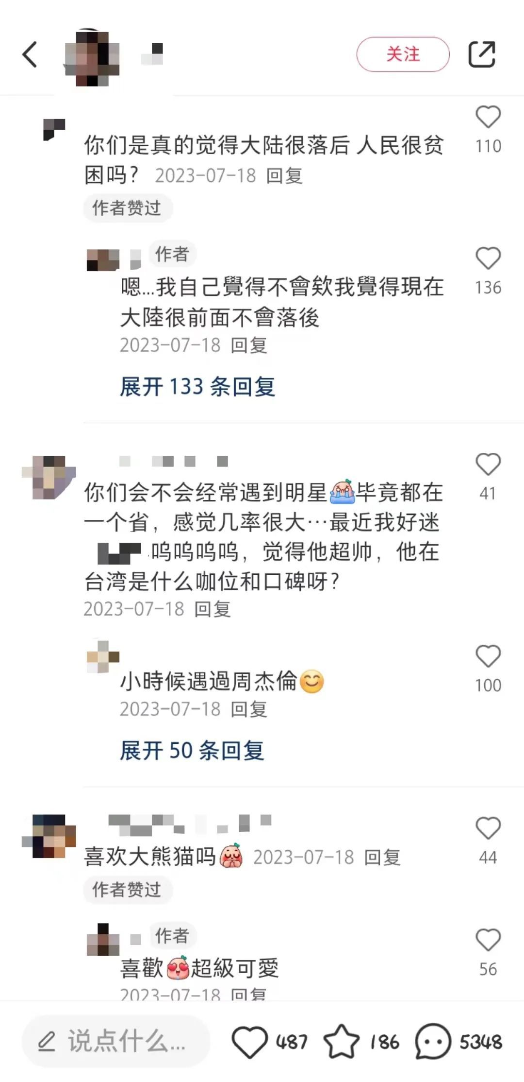“大陸哪個(gè)城市的美食多?”“用現(xiàn)金支付可以嗎?”“畢業(yè)后想去大陸工作,可以分享一下經(jīng)驗(yàn)嗎?”……小紅書上有不少“臺(tái)灣人問,大陸人答”的帖子,兩岸年輕人就生活、文化、飲食等話題,在評(píng)論區(qū)留言、互動(dòng)。當(dāng)然,也有臺(tái)灣年輕人現(xiàn)身回答島內(nèi)情況,同樣熱評(píng)紛紛。